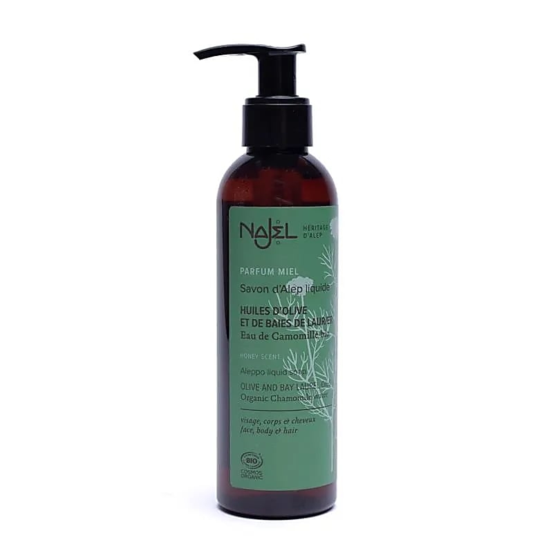 Ontdek echte, voedende Aleppo-zeep in vloeibare vorm, in combinatie met de verzachtende eigenschappen van biologisch kamillebloemwater. Deze hand- en douchegel van Najel is geschikt voor alle huidtypen, met name de droge en gevoelige huid.